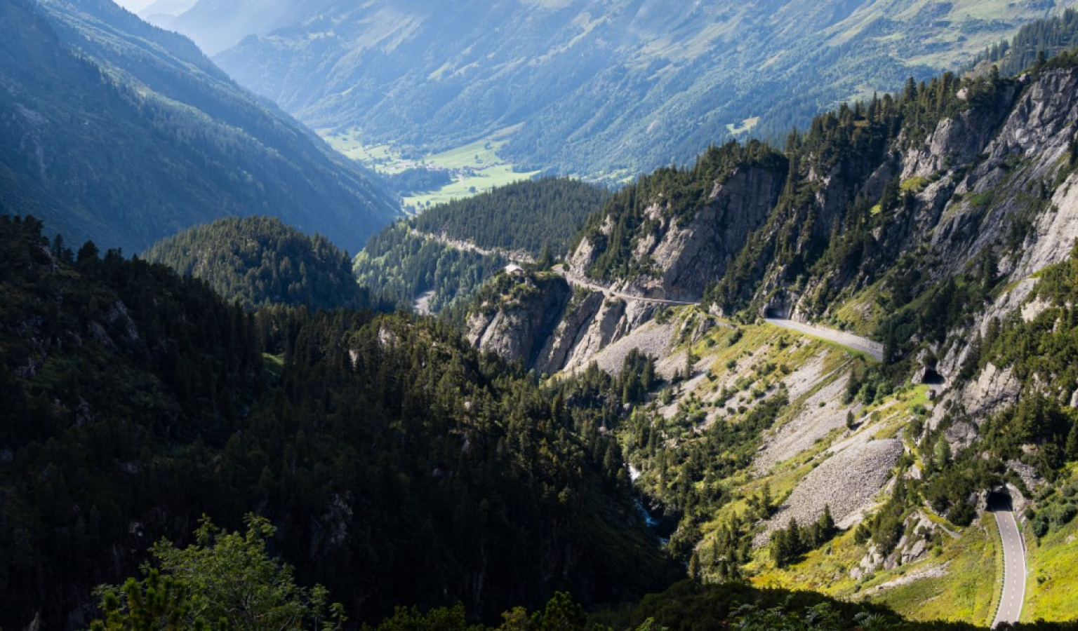 As you descend further into the Meien Valley, the road begins to cling more intimately to the valley side. You’ll encounter more tunnels and bridges, including some spectacular arch bridges that span deep gorges. The landscape transitions back from the stark, rocky peaks to pine forests and eventually lush pastures. The bends are rhythmic, allowing you to settle into a natural flow, shifting up and down through the gears as the road dictates. The Meien Valley is a picture of serene beauty, a gentle winding down from the dramatic heights of the pass. The approach to the charming village of Wassen, with its iconic church, marks the official end of the Susten Pass drive.